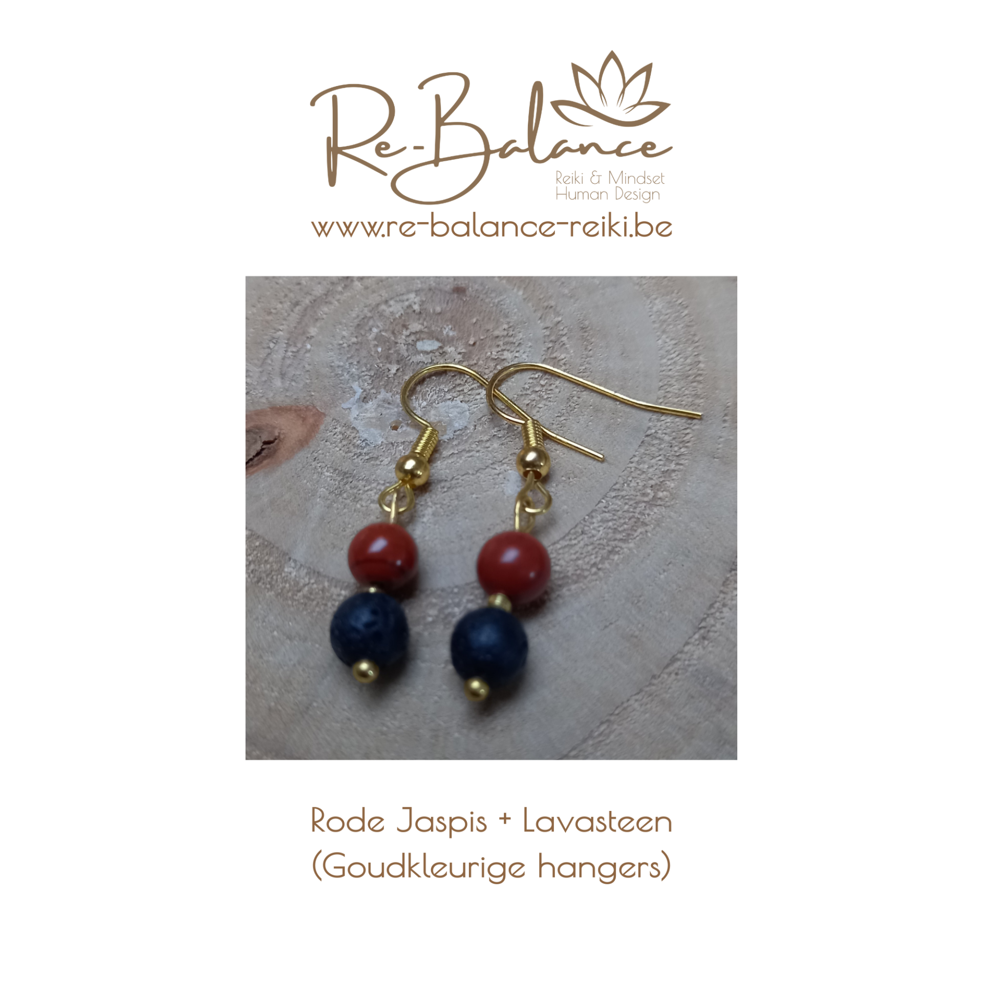 Handgemaakte oorbellen met kralen (diameter 6mm) van echte edelstenen en lavasteen.